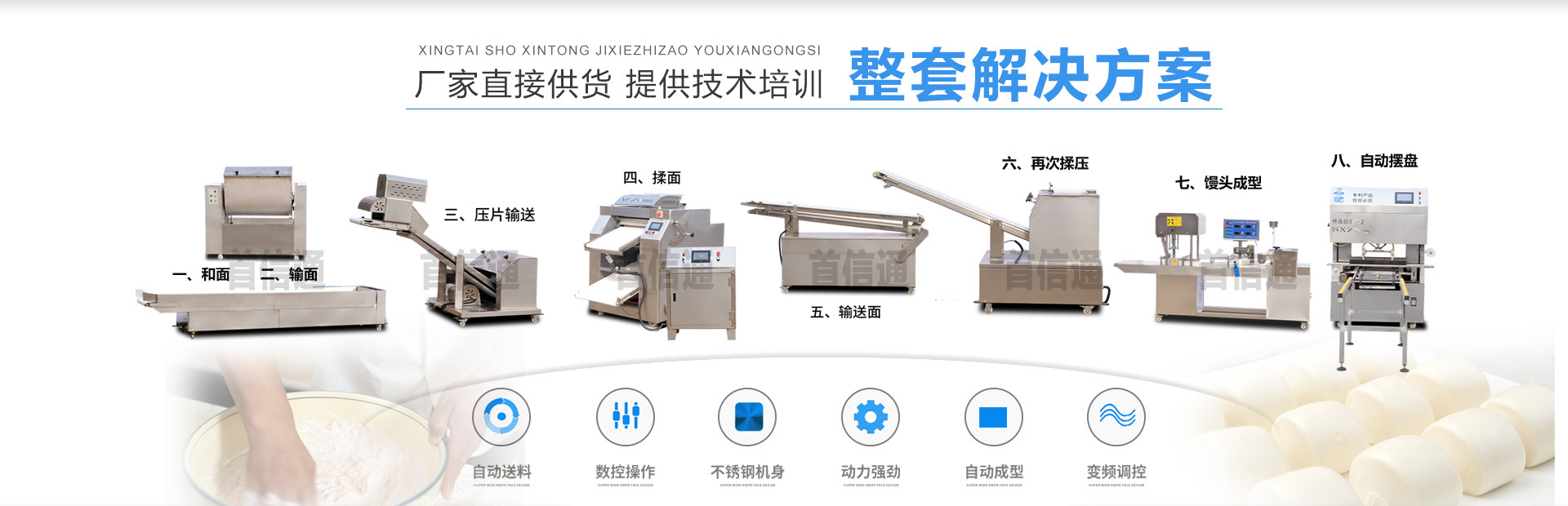 邢臺(tái)首信通機(jī)械制造有限公司的主打產(chǎn)品有:饅頭機(jī),智能饅頭生產(chǎn)線(xiàn),包子機(jī),餃子機(jī),剁餡機(jī),揉面機(jī),各種設(shè)備均可來(lái)電定做。